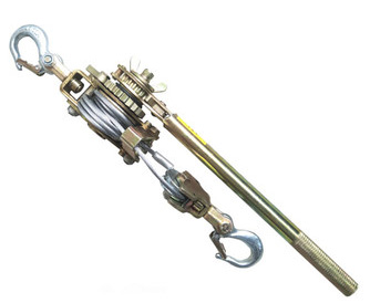 緊線器是在輸電線路鋪設(shè)施工現(xiàn)場(chǎng)做為繃緊導(dǎo)線用的。應(yīng)用時(shí)先把緊線器上的鋼絲繩或鍍鋅鐵線松開(kāi),并固定不動(dòng)在橫擔(dān)上,用夾線鉗夾住導(dǎo)線,隨后擰動(dòng)專(zhuān)用型板手。因?yàn)榧Φ姆来竽孓D(zhuǎn)功效,慢慢把鋼絲繩或鍍鋅鐵線繞在棘輪扳手滾桶上,使導(dǎo)線縮緊。把縮緊的導(dǎo)線固定不動(dòng)在絕緣子上。隨后先松開(kāi)棘爪,使鋼絲繩或鍍鋅鐵線松開(kāi),再松開(kāi)夾線鉗,最終把鋼絲繩或鍍鋅鐵線繞在棘輪扳手的滾桶上。