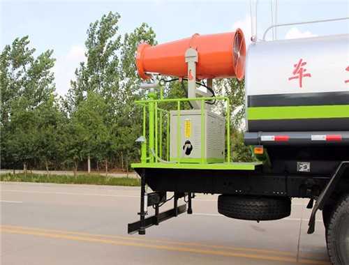 上裝配置:罐體容積為 10-12 立方多功能抑塵灑水車,選配風送式霧炮機組射程50米、60米、80米,罐體鋼板為4mm碳鋼Q235材質,罐內隔板具有防波作用,以減輕汽車行駛時罐體液體沖擊,罐體及整車外形尺寸按照公告。帶大功率專用灑水泵,泵可自吸自排,整車前沖、后灑、側噴、帶65消防接口,后平臺配CLW-50、CLW-60、CLW-80型風送式霧炮機組;罐體前封頭配大功率柴油發電機組;遠程遙控系統控制;霧炮機自動旋轉角度0-360°。后平臺帶綠化灑水炮,灑水炮可全方位旋轉,可連續調成直沖狀、大雨、小雨、毛毛雨;前封頭帶水位計,后平臺主管路帶1寸澆花接口,后爬梯。帶兩根輸水管及陰陽端。罐體顏色:銀/灰/綠,罐體兩側噴“多功能抑塵車”字樣,貼反光標示。
