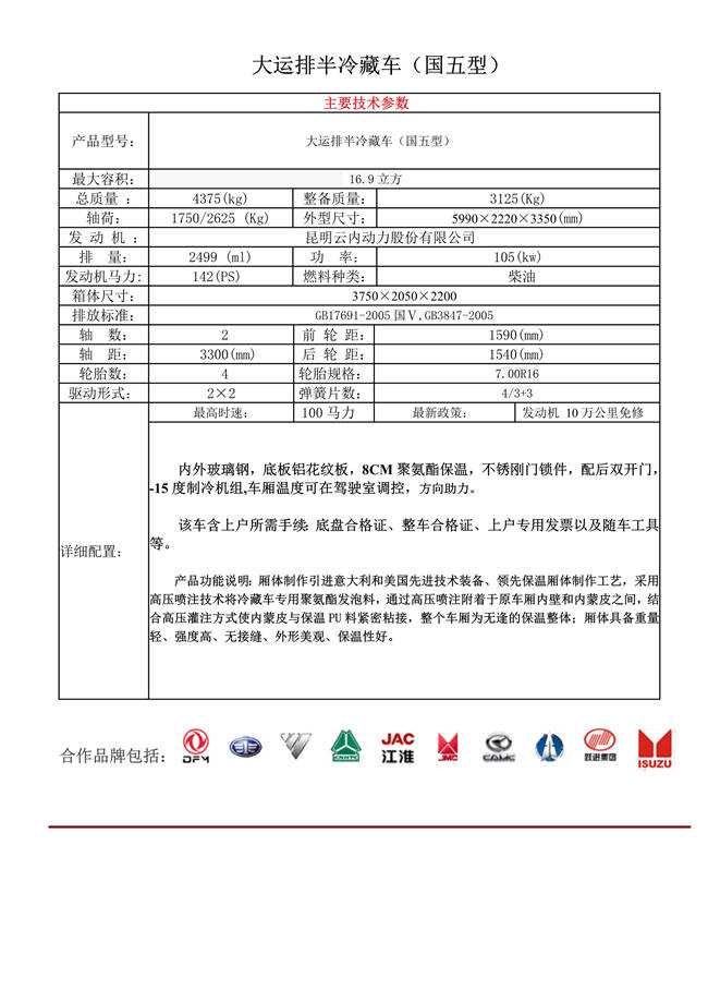 大運排半冷藏車(國五型)